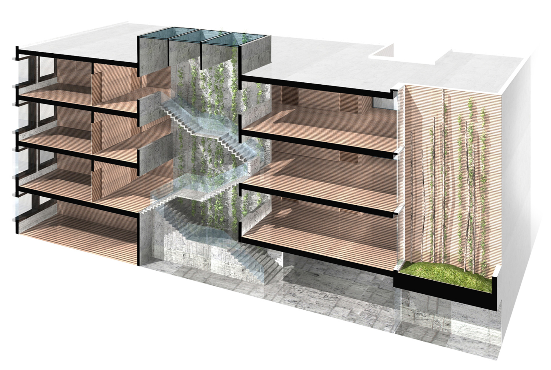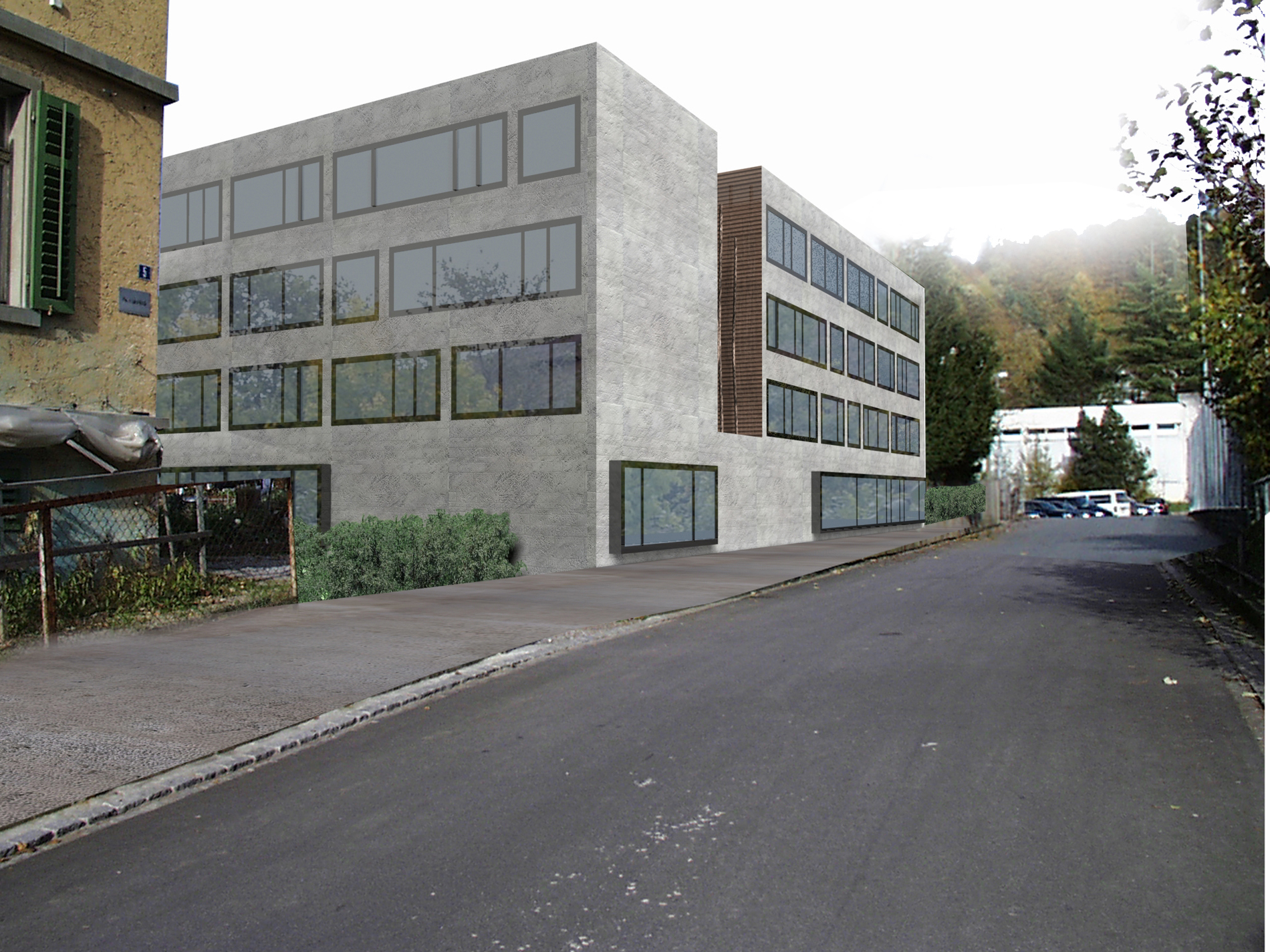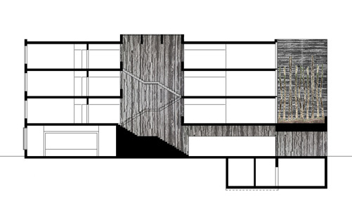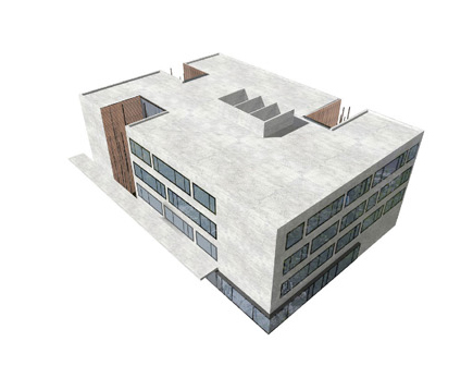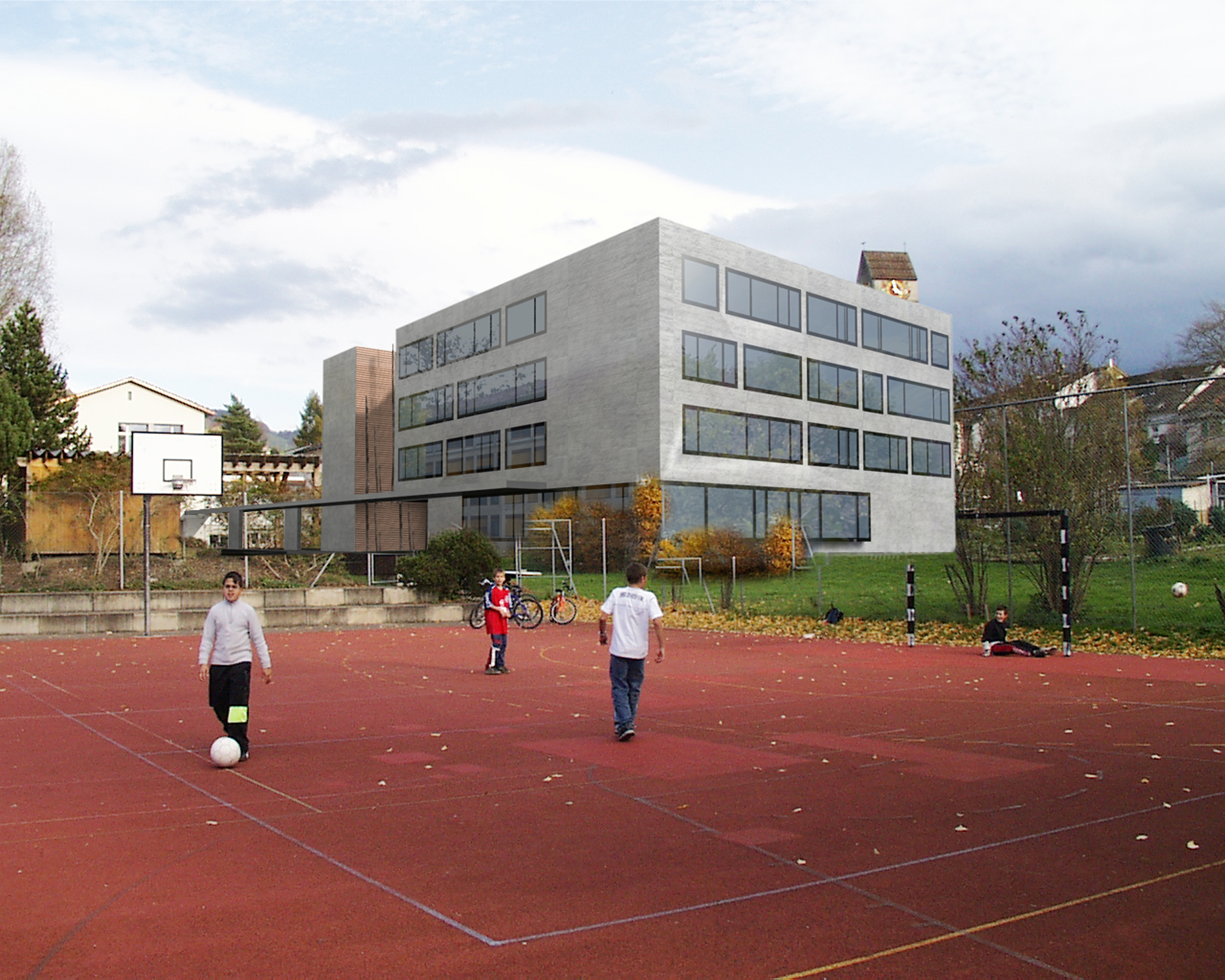 The sleek cube cites the large structures of the existing school buildings, while deliberate recesses and incisions bring order to the facade and accommodate the adjacent residential buildings with a nod to urban development considerations.