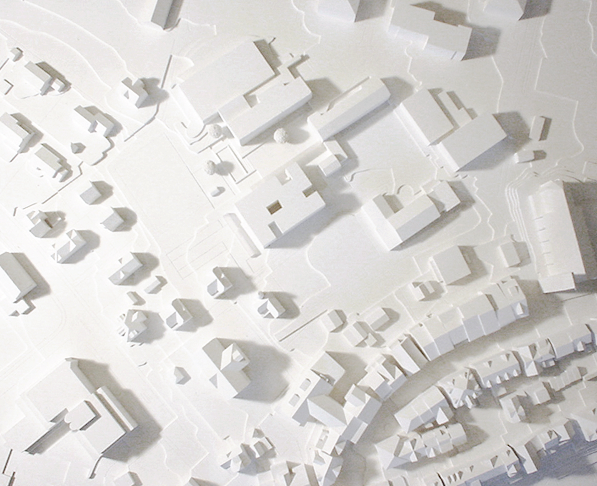 The new school building situated between an array of different structures seizes on this tension and serves as an intermediary between the competing styles and functions.