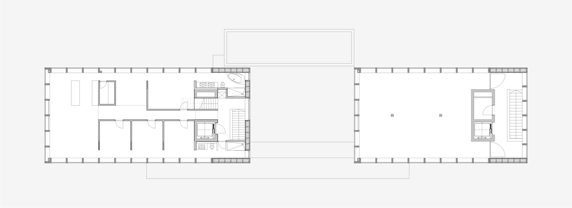 The top storey features a residence facing the lake. With the exception of the reinforcing concrete core, the interior of the residence is built entirely without supports to guarantee maximum flexibility in terms of interior design.