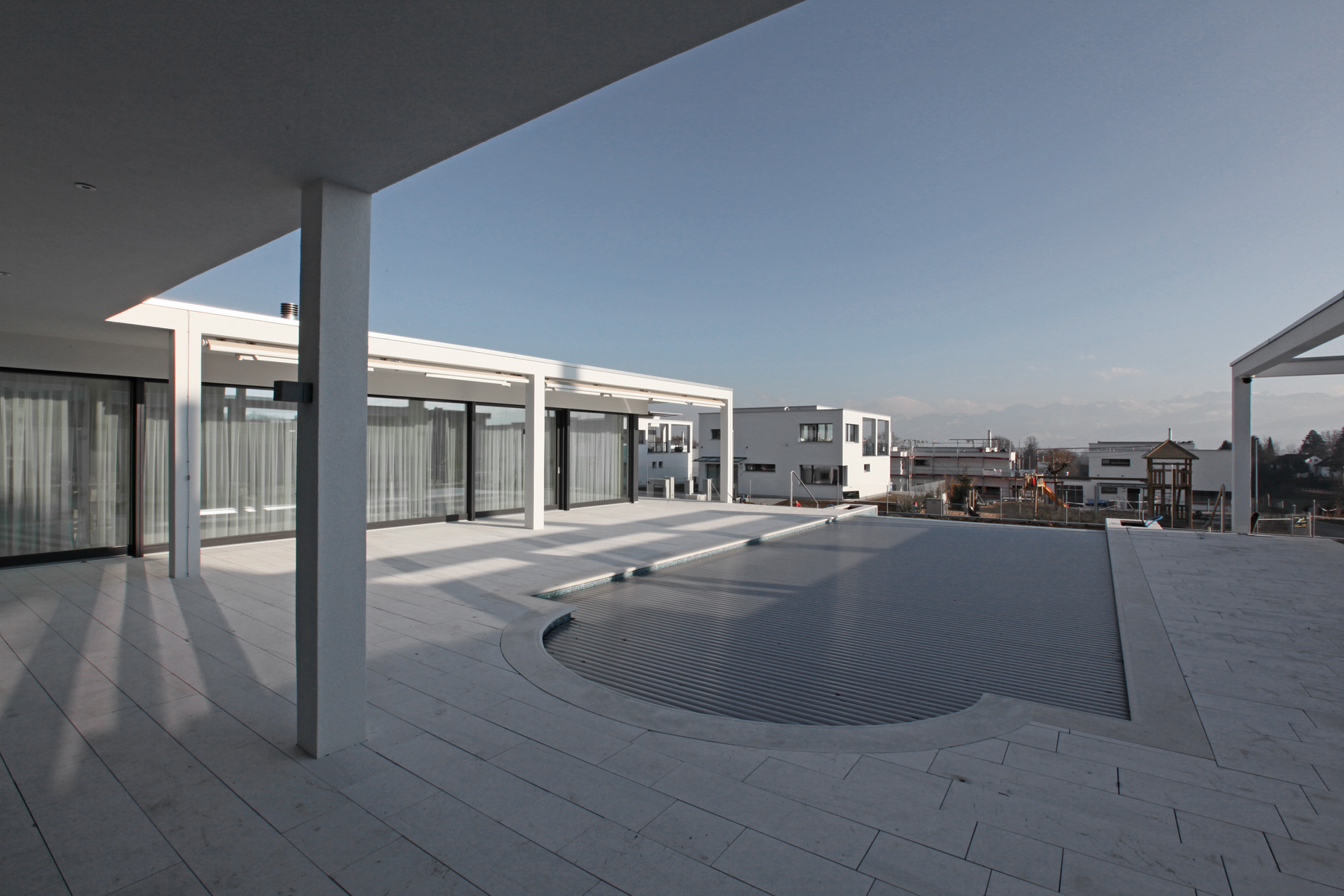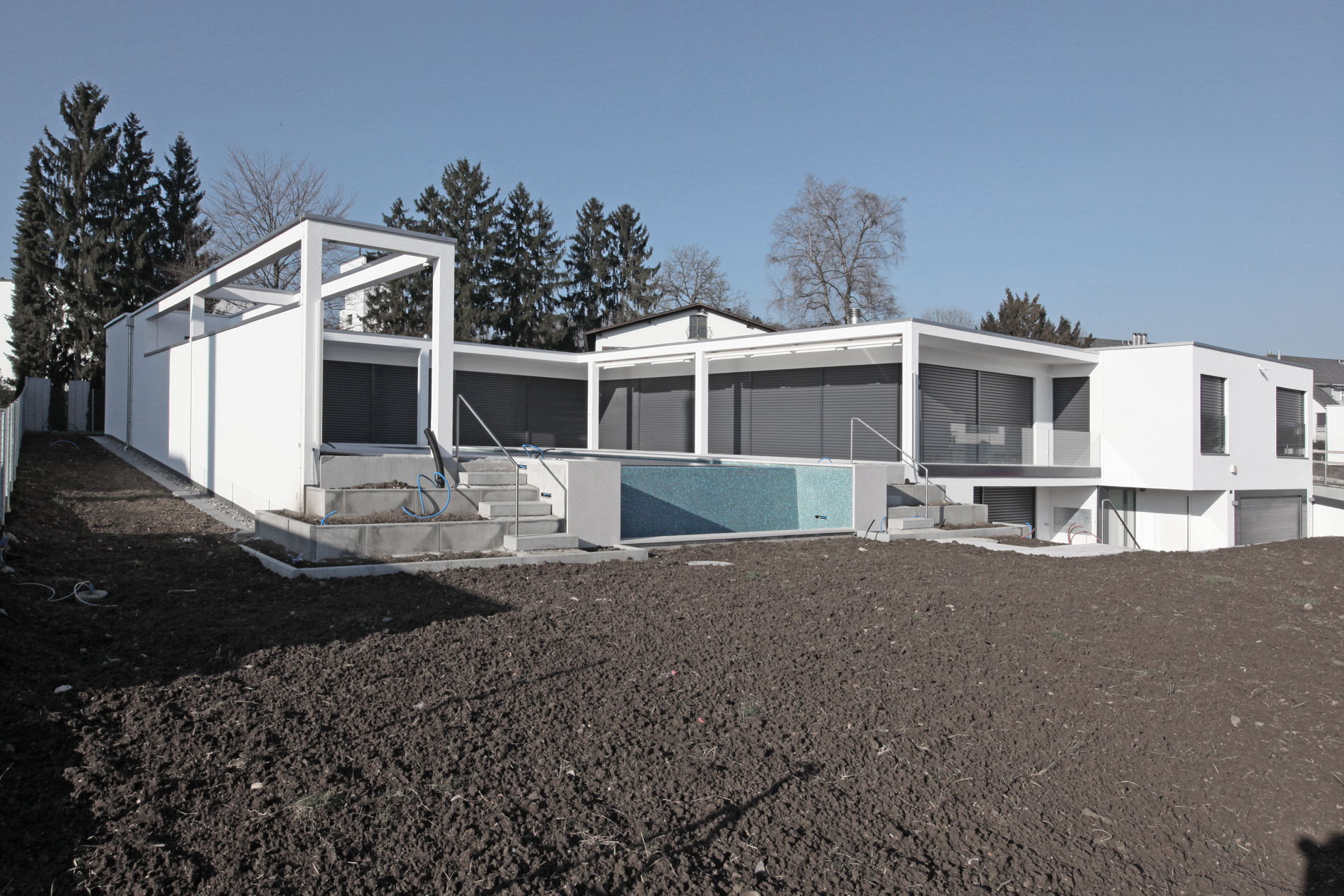 Three bungalows were constructed at the northern end of the Elfengrund Hombrechtikon residential project, which are arranged around a three-sided enclosed terrace area in allusion to Roman atrium houses.