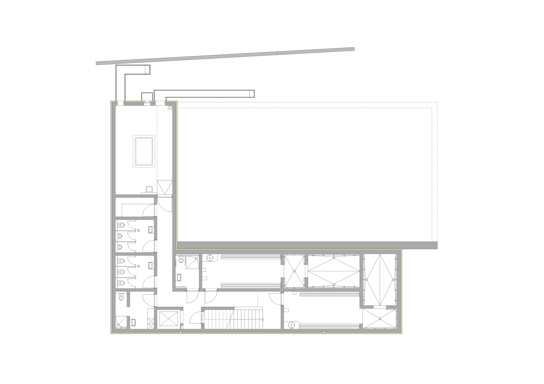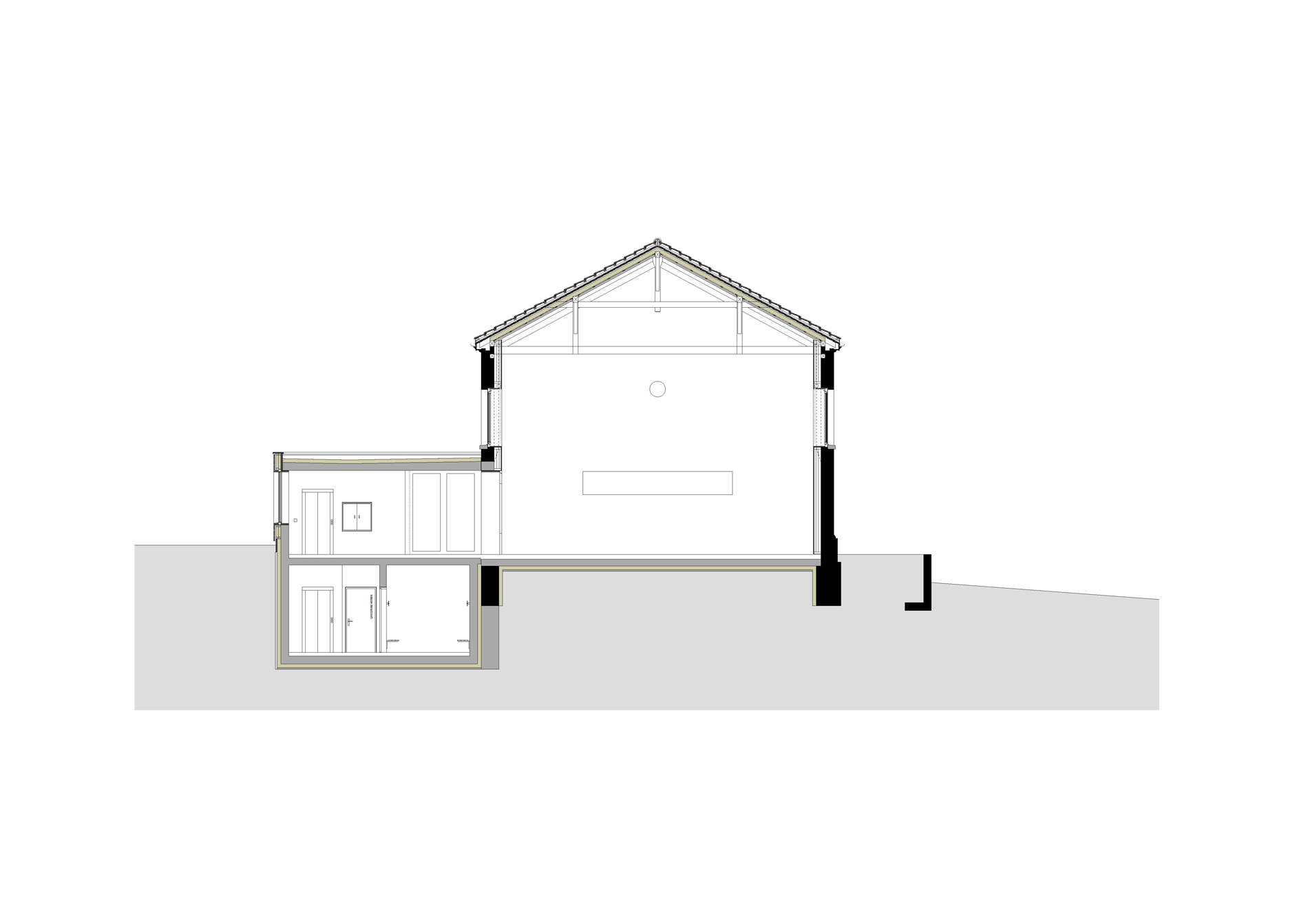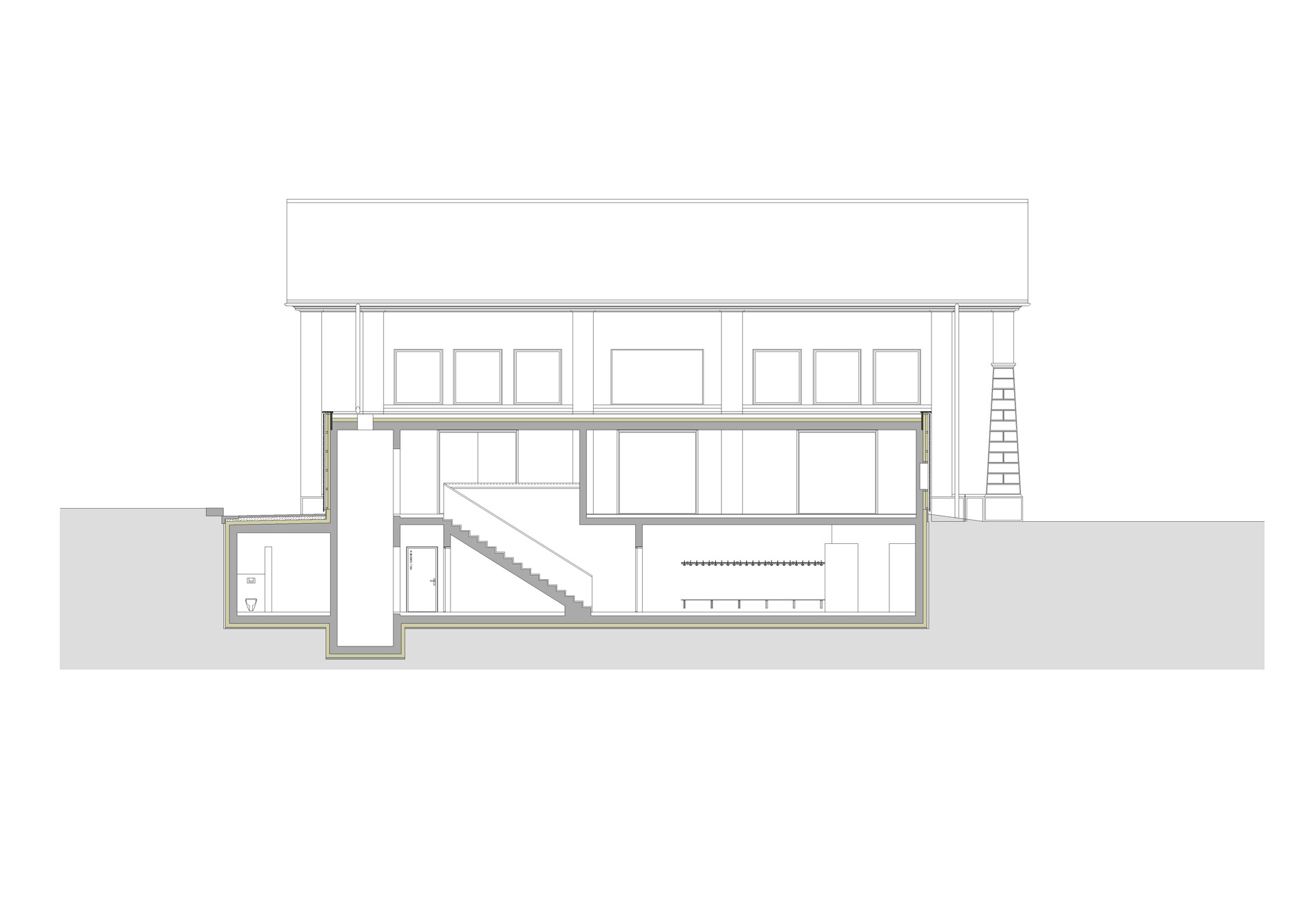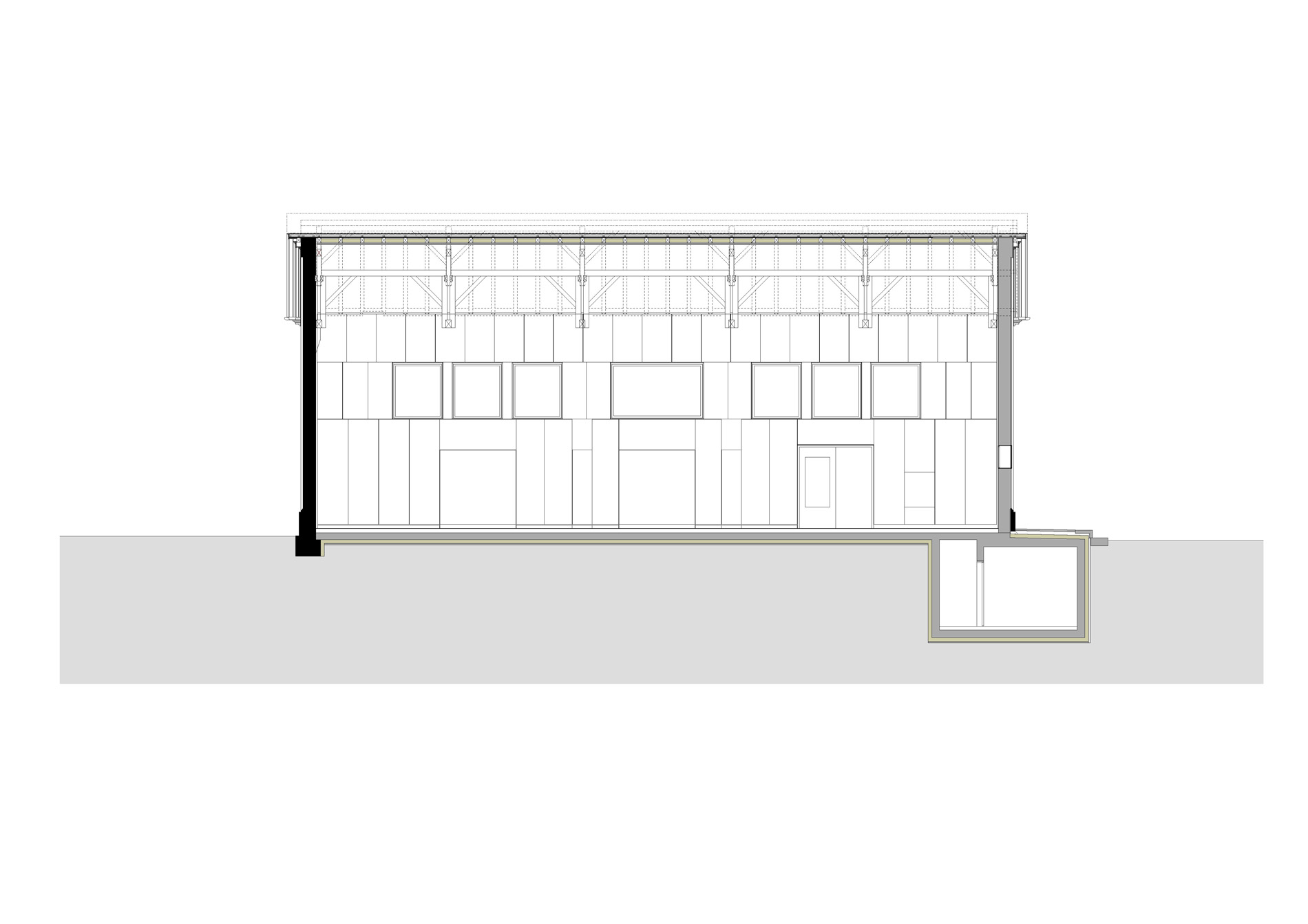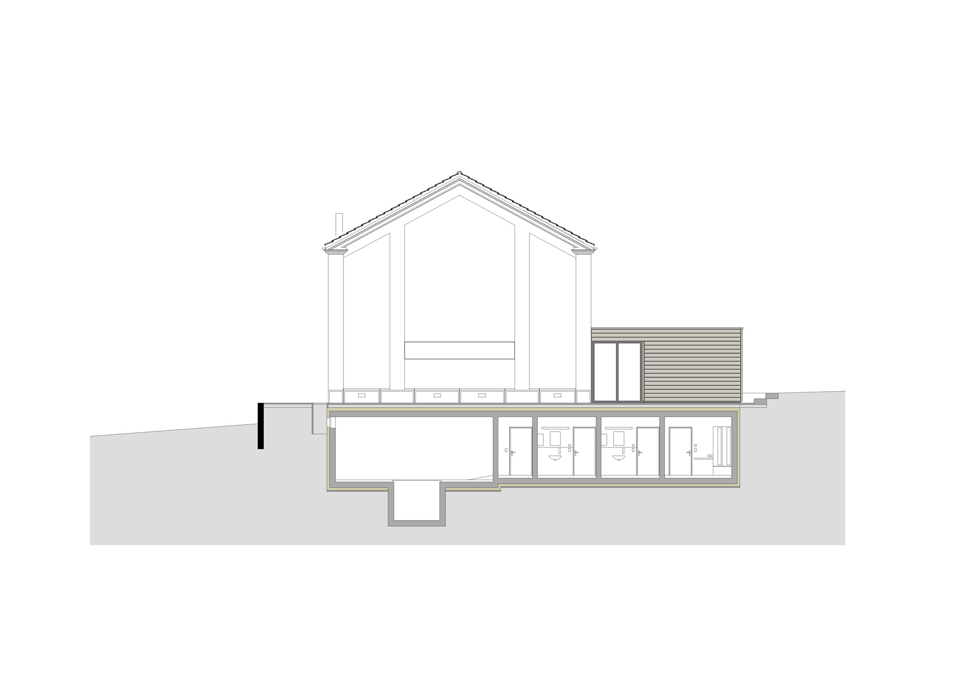 Earlier renovations and additions carried out with little sensitivity have greatly reduced the visual impact of Halden gym. Apart from the facade on the north side of the building, all distinctive characteristics have been ruined. The current sketch removes those additions with no historical or practical value and restores the building to its former proportions. The gym is extended back to its original dimensions, and the southern facade is recreated as an interpretation of the original plan. The transverse box window in the facade facing the street cites the main entrance originally located here.