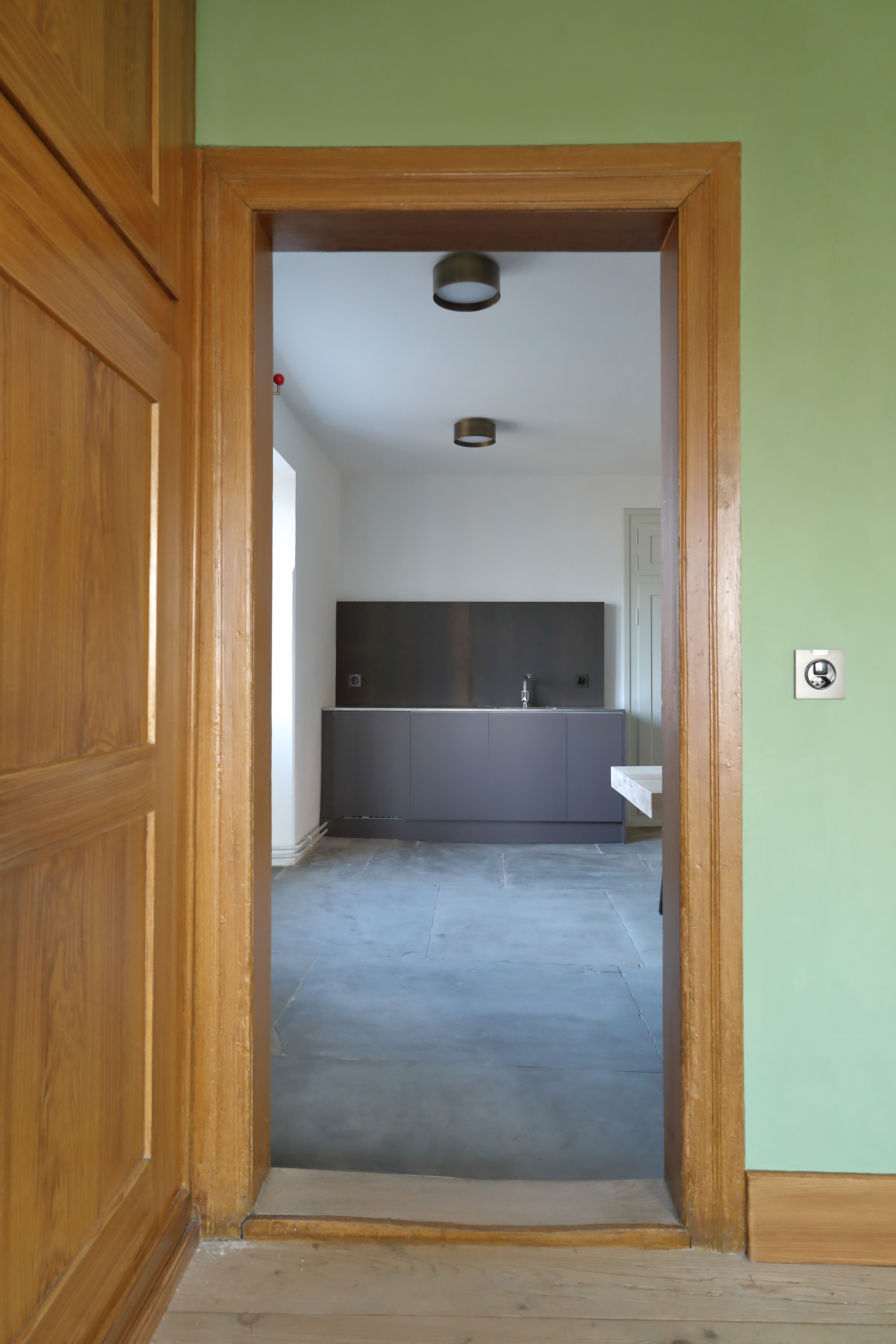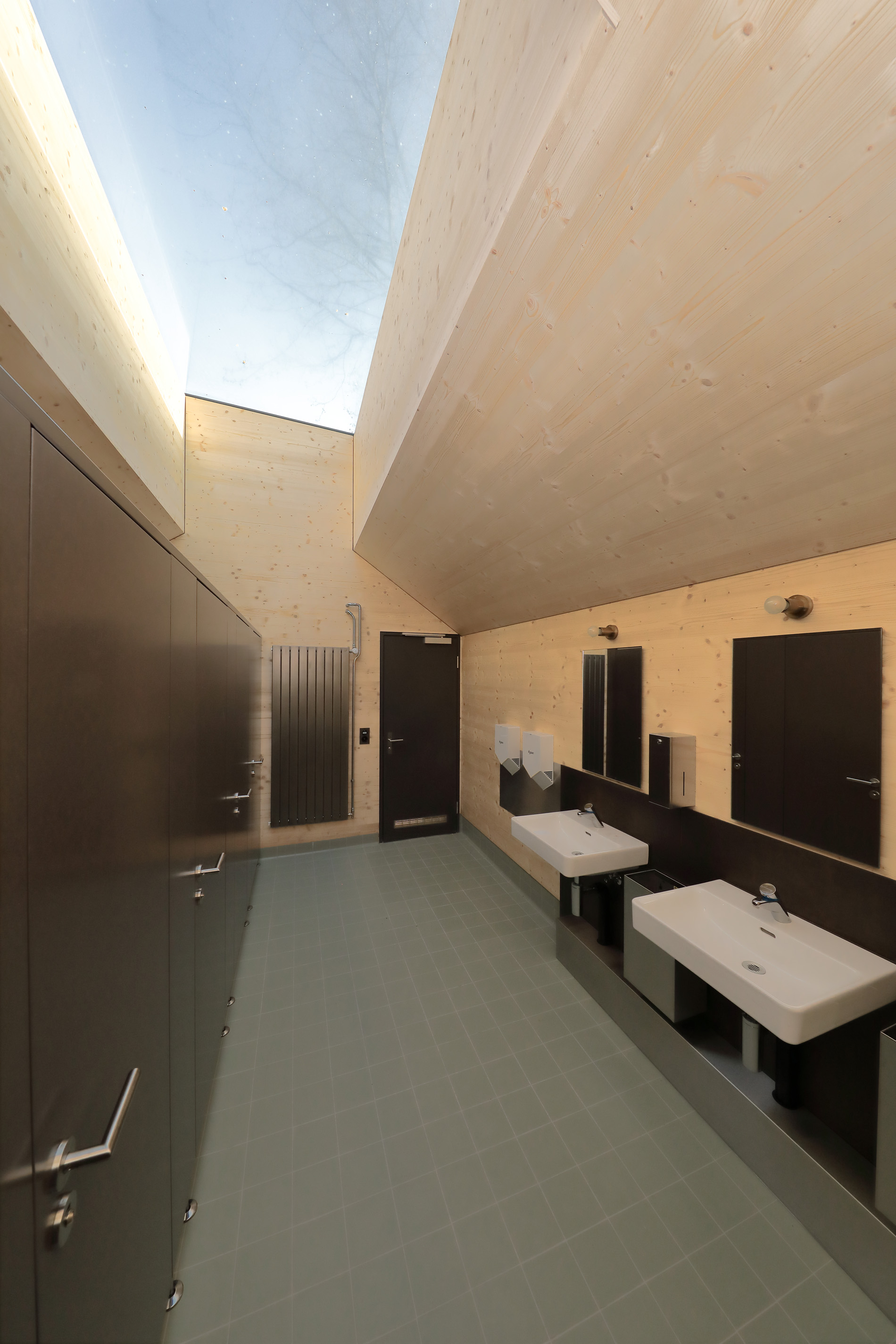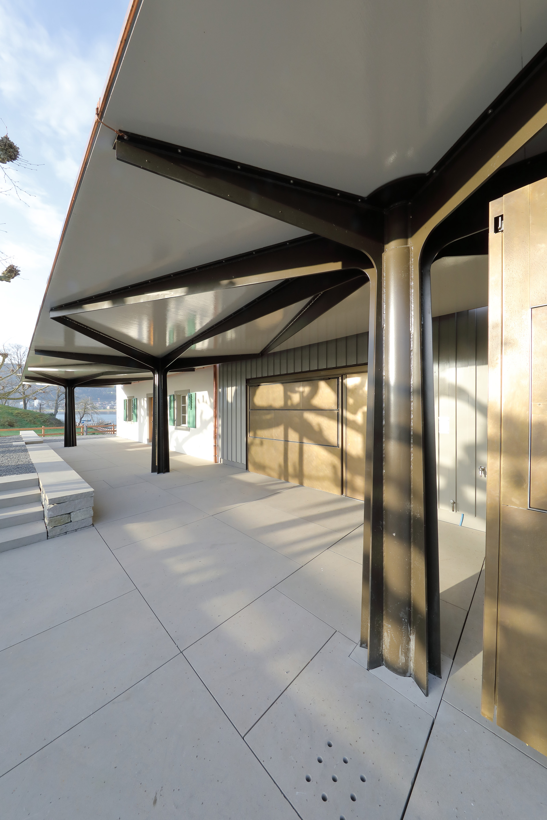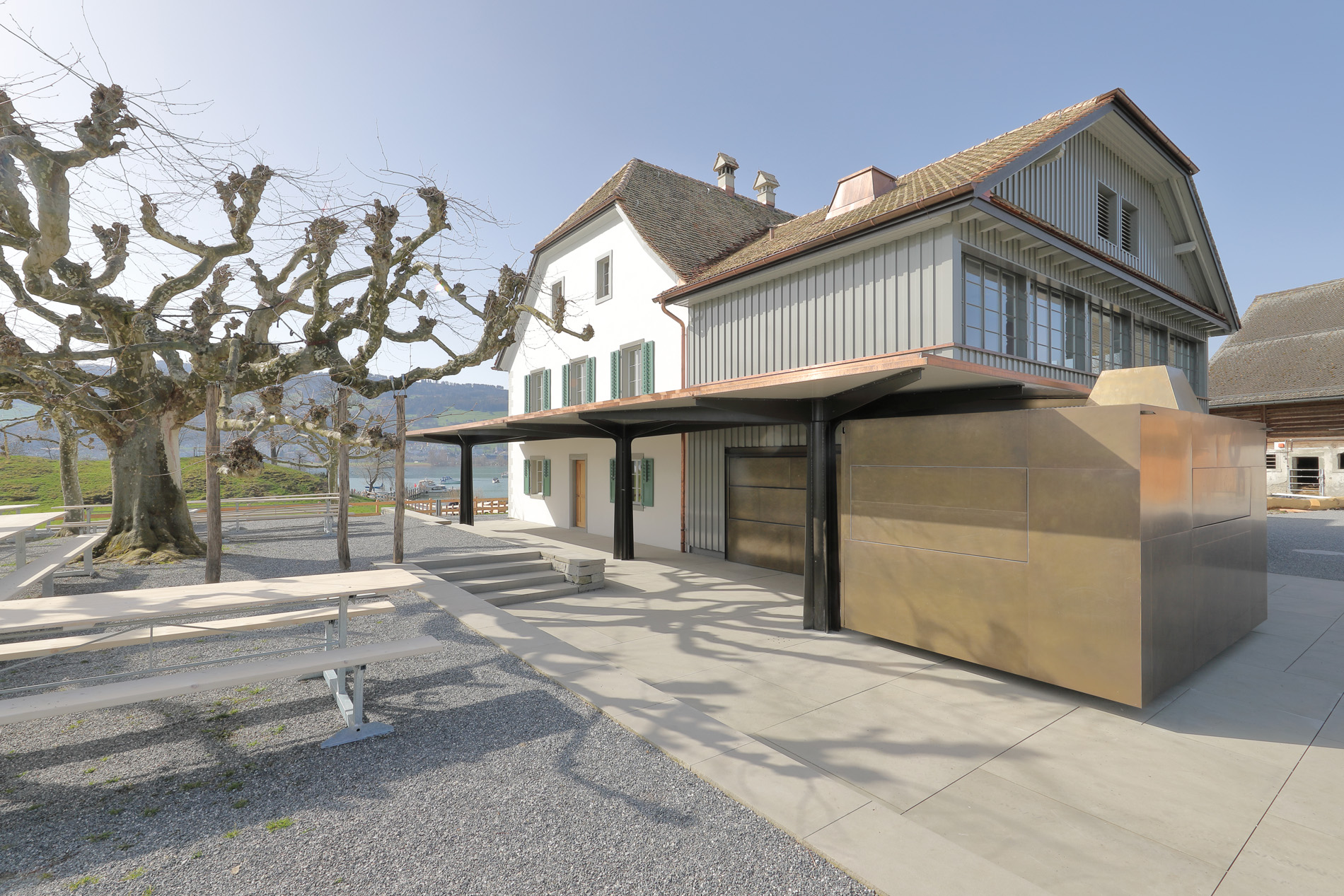 The extension from the time of the National Exhibition in 1939 will be used to serve the guesthouse. The restaurant kitchen is on the ground floor, a storage room is in the former hall due to stipulations made by the fire department, and the ventilation station is located in the attic.