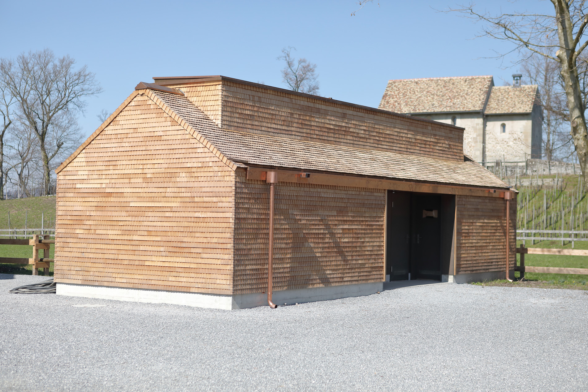 The technical installations and the guest toilet will be housed in separate buildings. The technical room (heating, cooling, electricity, water) will be connected by transmission lines.