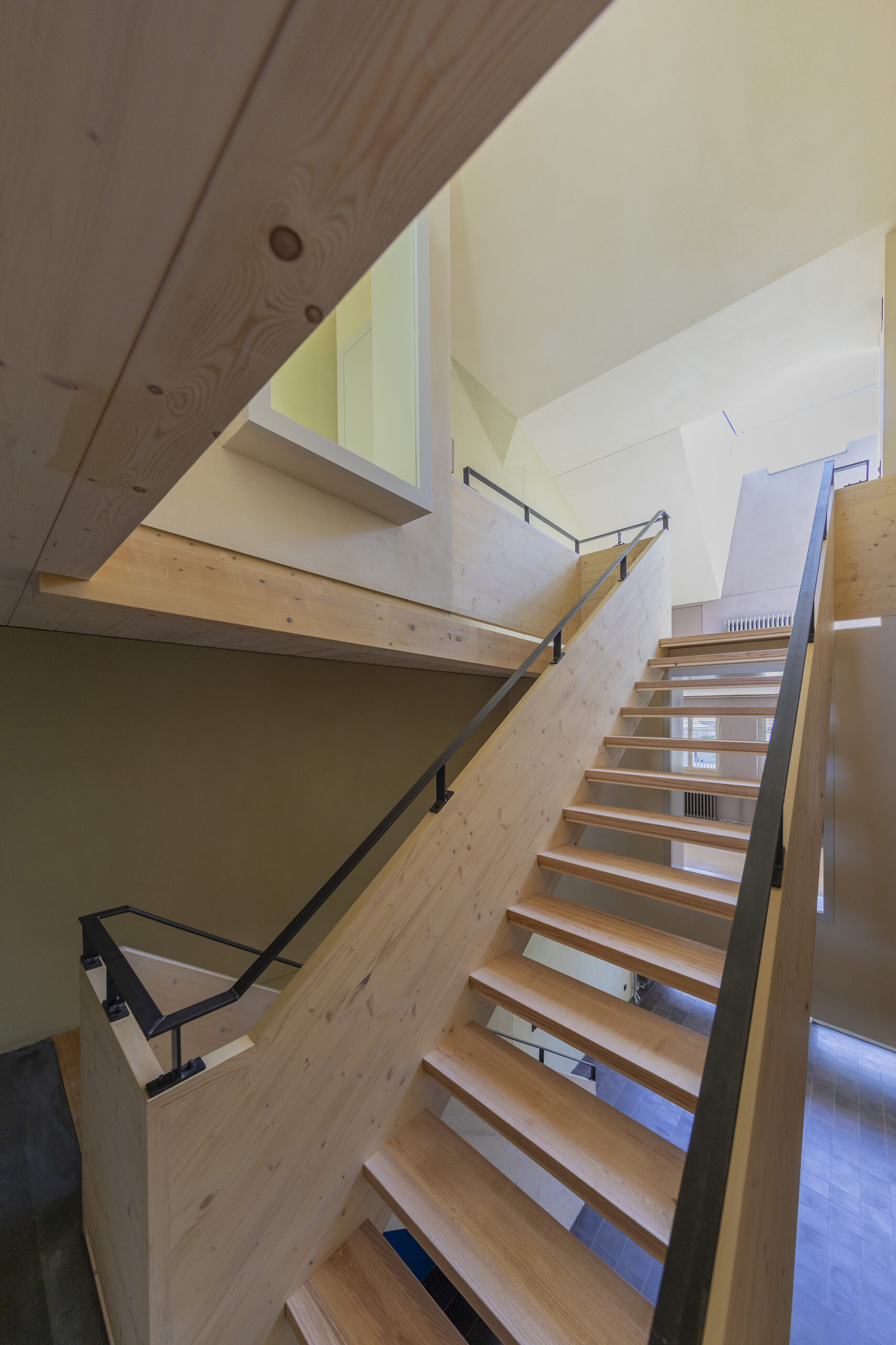 The building is accessed via the central, newly created inner courtyard. This also illuminates the inner parts of the building via the skylights in the attic. From the rooms bordering the courtyard, there are numerous visual connections via interior windows.