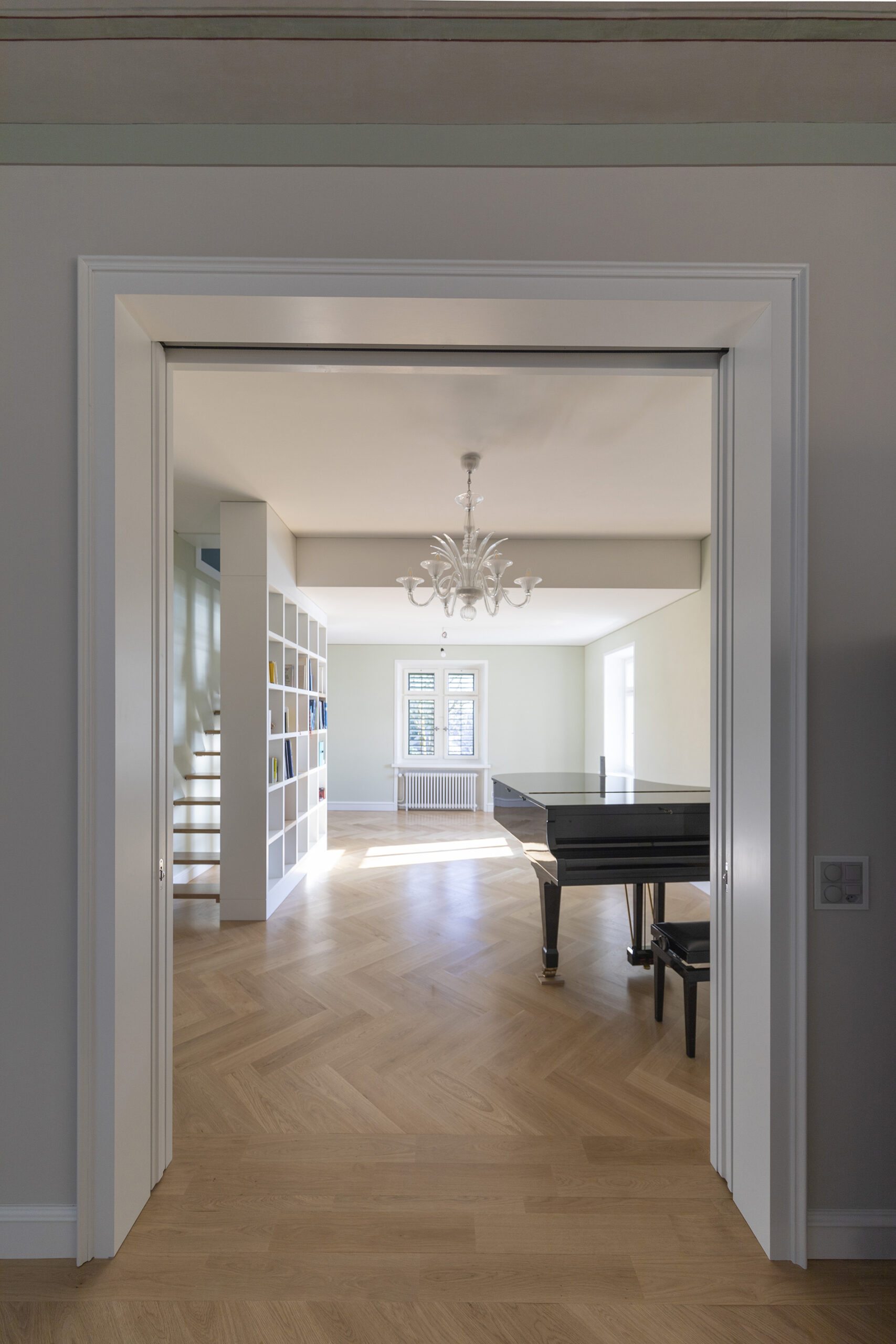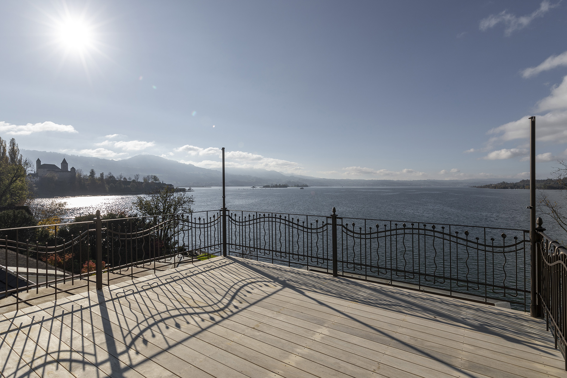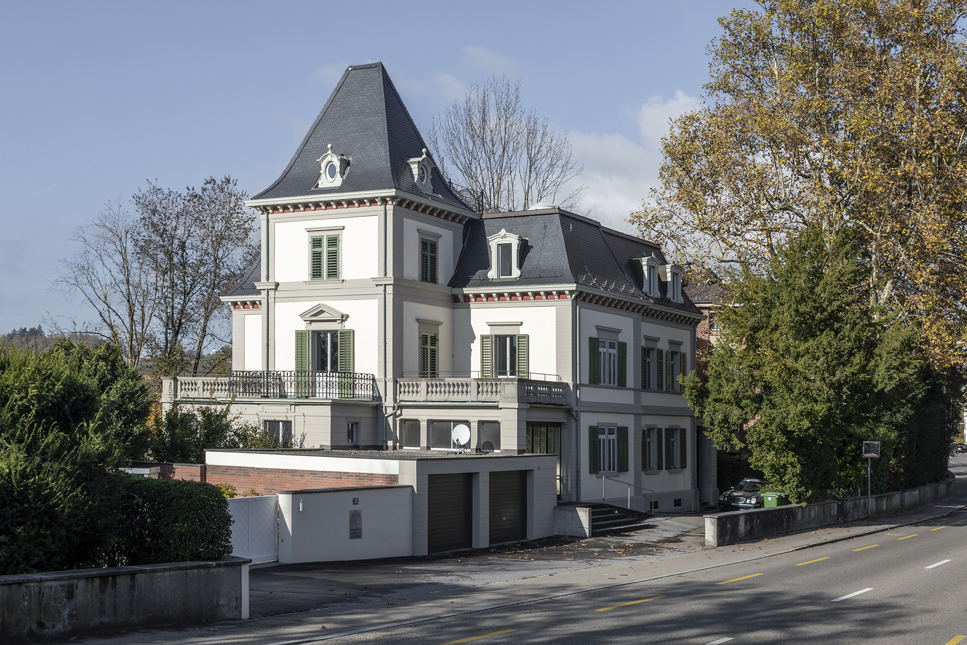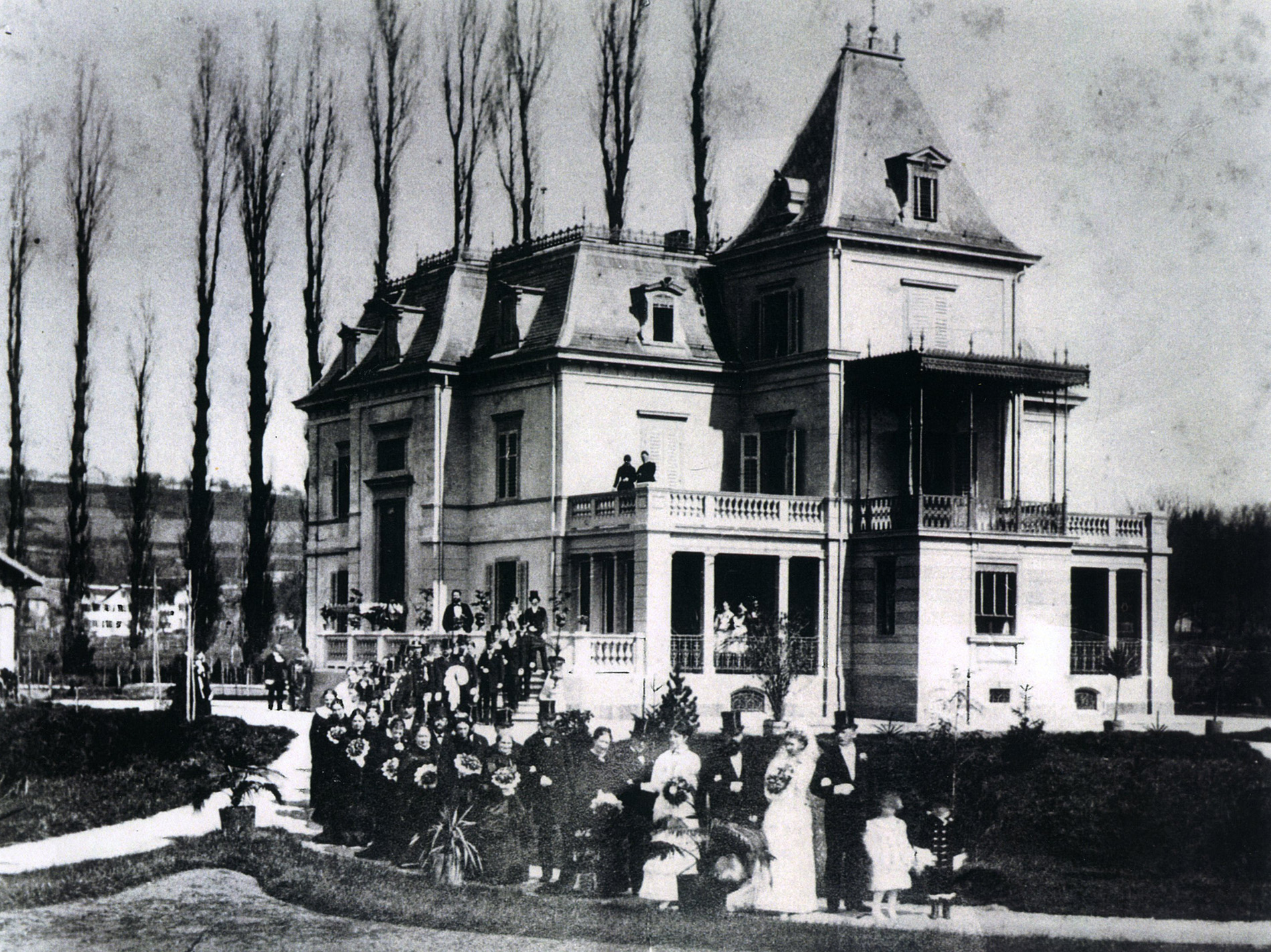 Heinrich Bühler-Honegger, born in 1833 as a farmer’s son in Schirmensee/Feldbach, technical manager of the Honegger machine factory in Rüti, National Councillor from 1881-93, took over a modest house on Kempratner Bucht and extended it around 1880/85 into the form of a representative villa. The architect is unknown, but is probably to be sought in the Zurich area (related villa building on the north side of Rüti railway station).