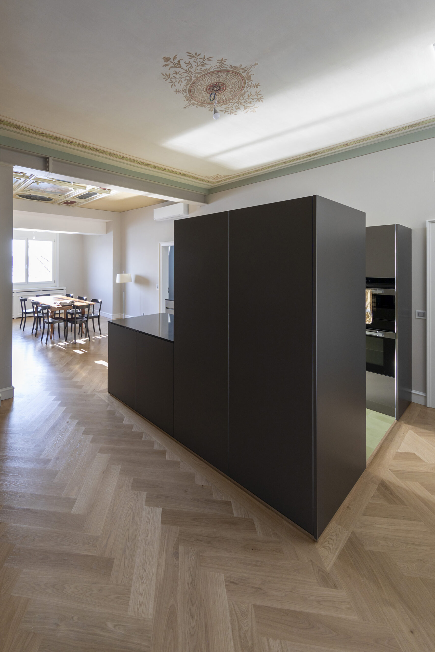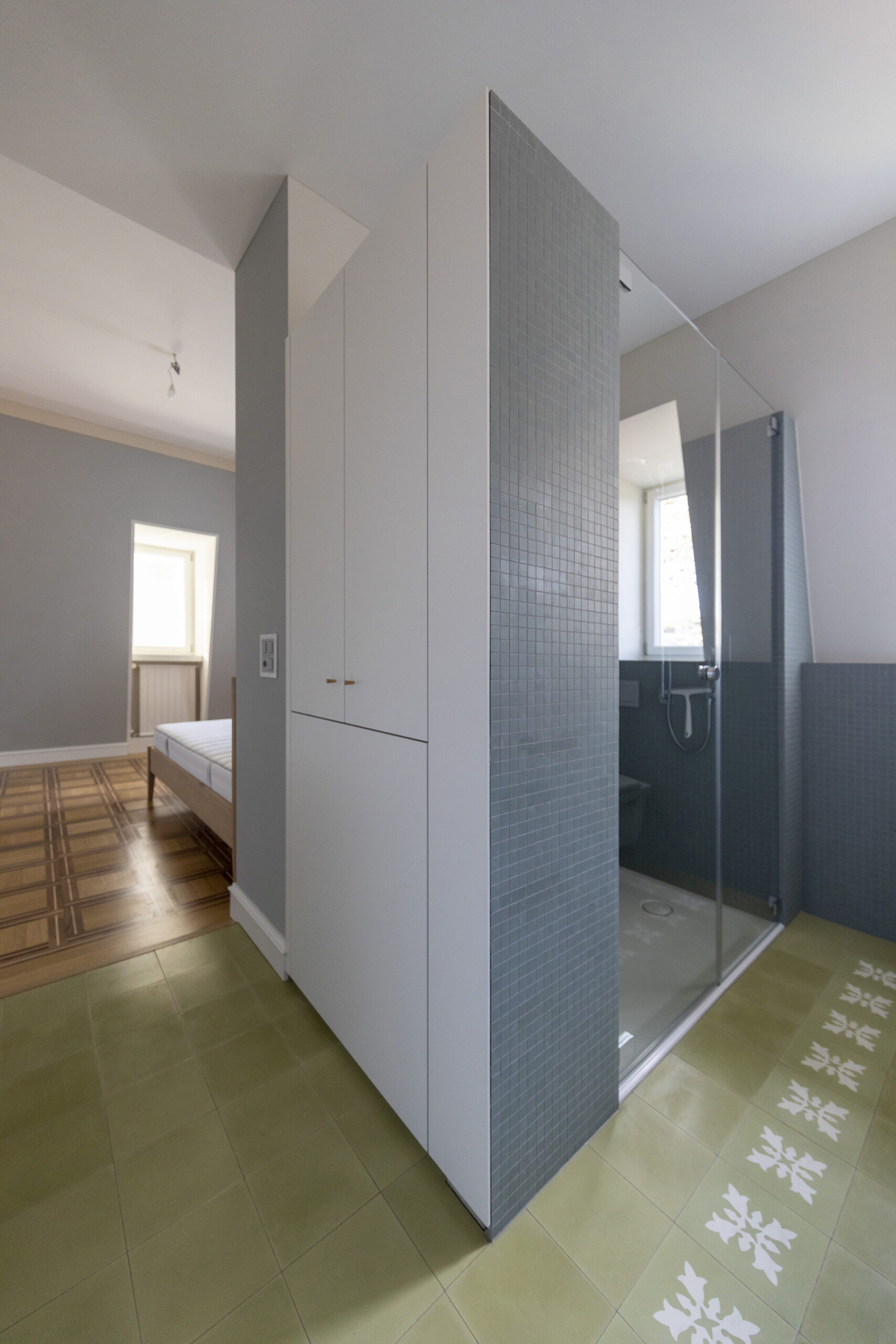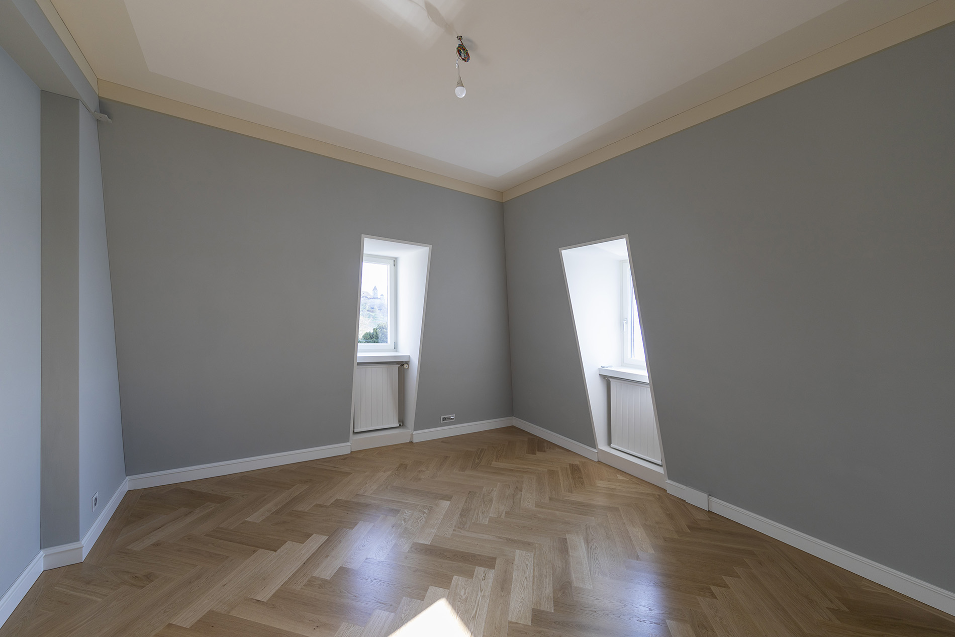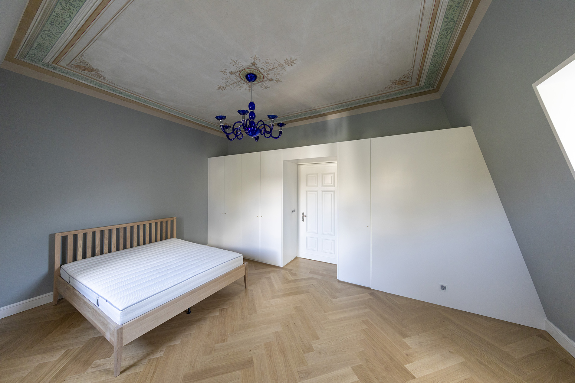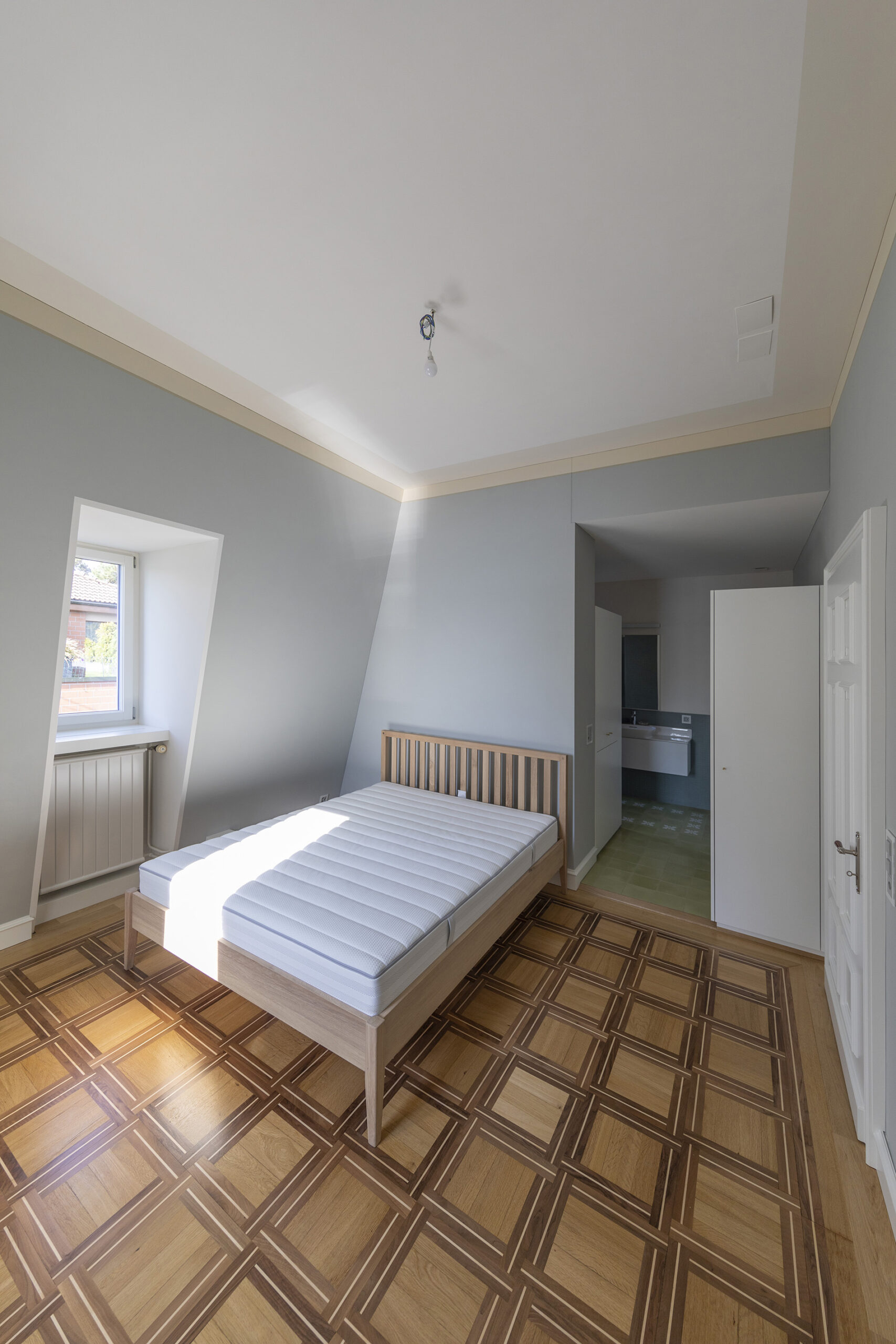 The late classicist building with a tower risalit on the city side and open loggias was heavily altered in the 1960s. The renovation now being carried out will bring the building back closer to its original design.